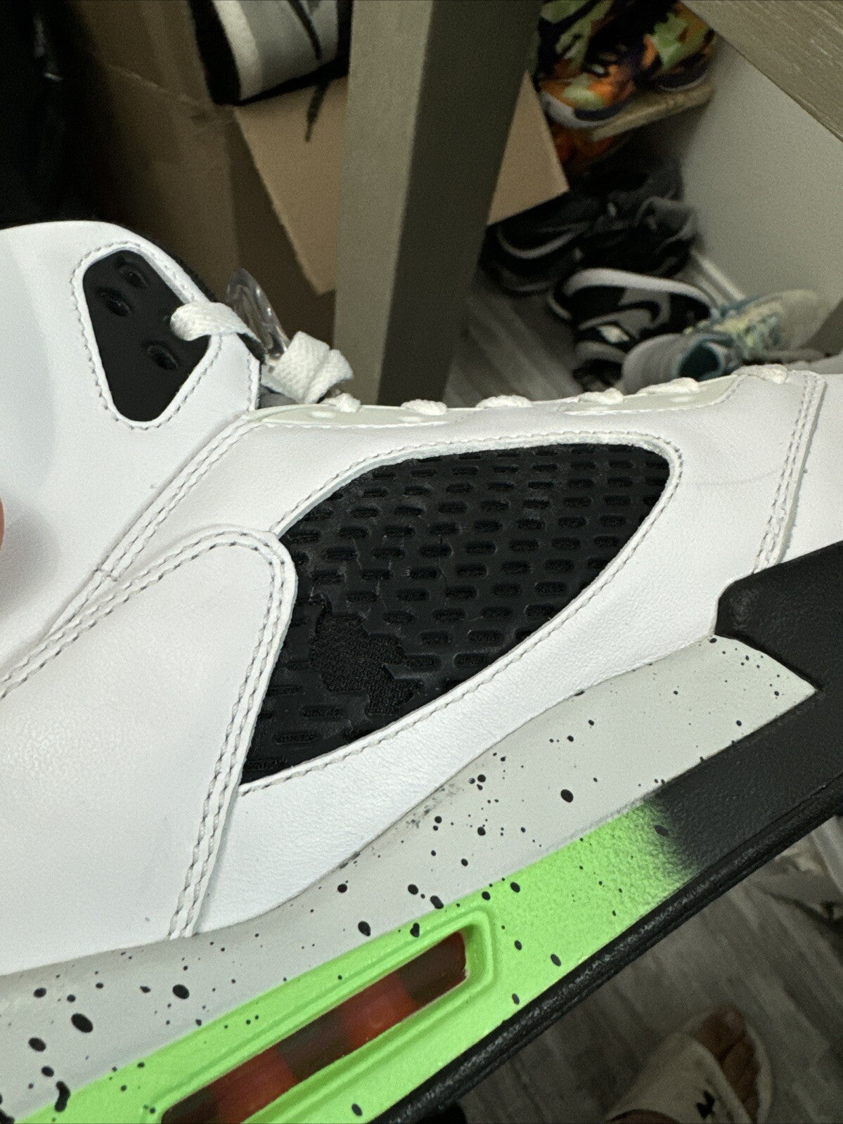 Netting flaw shown in last pic. Only on inside side of left shoe