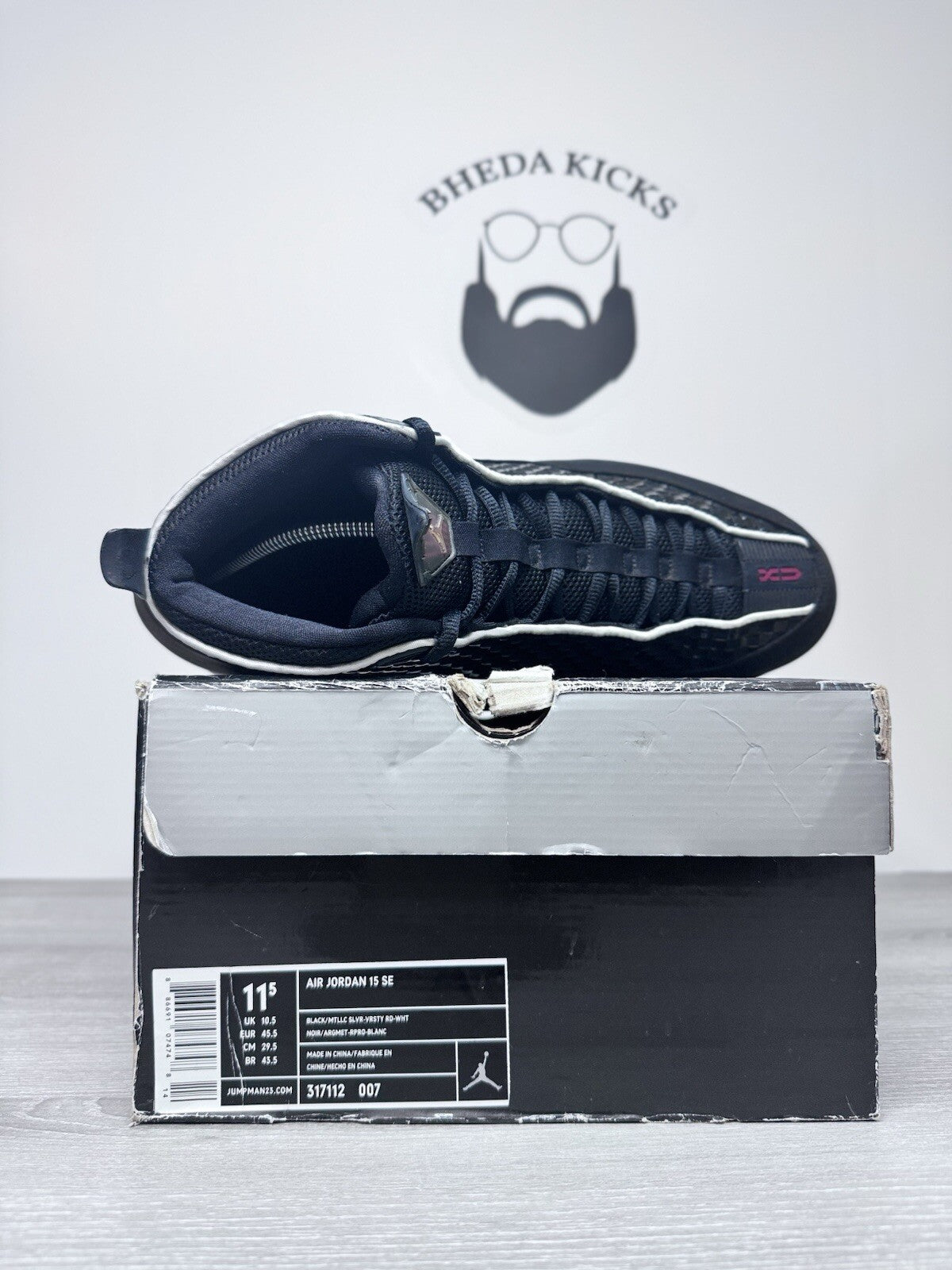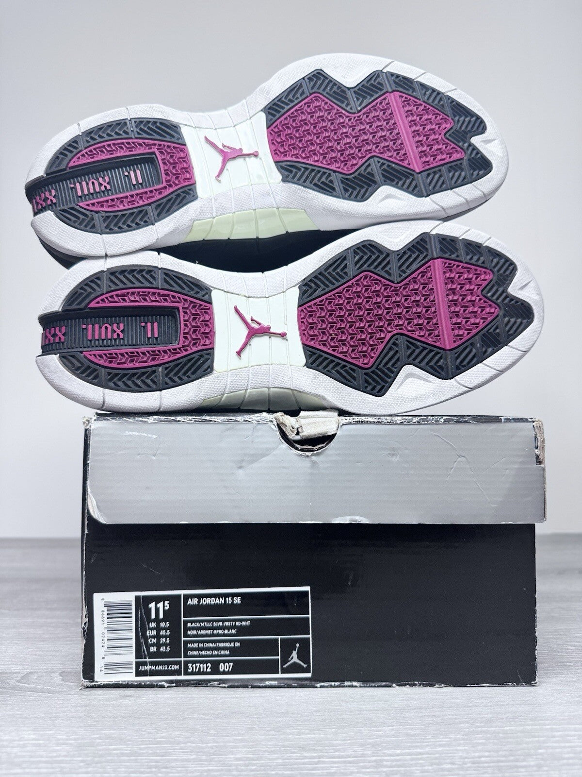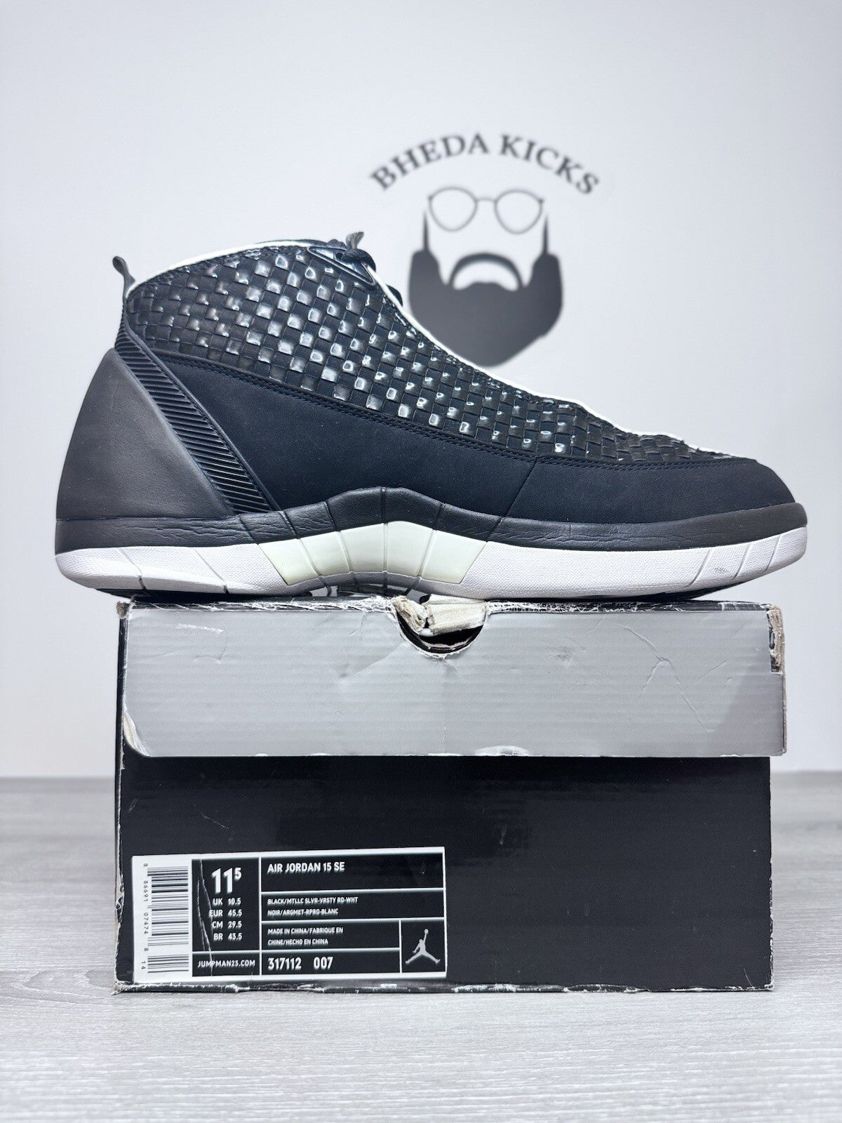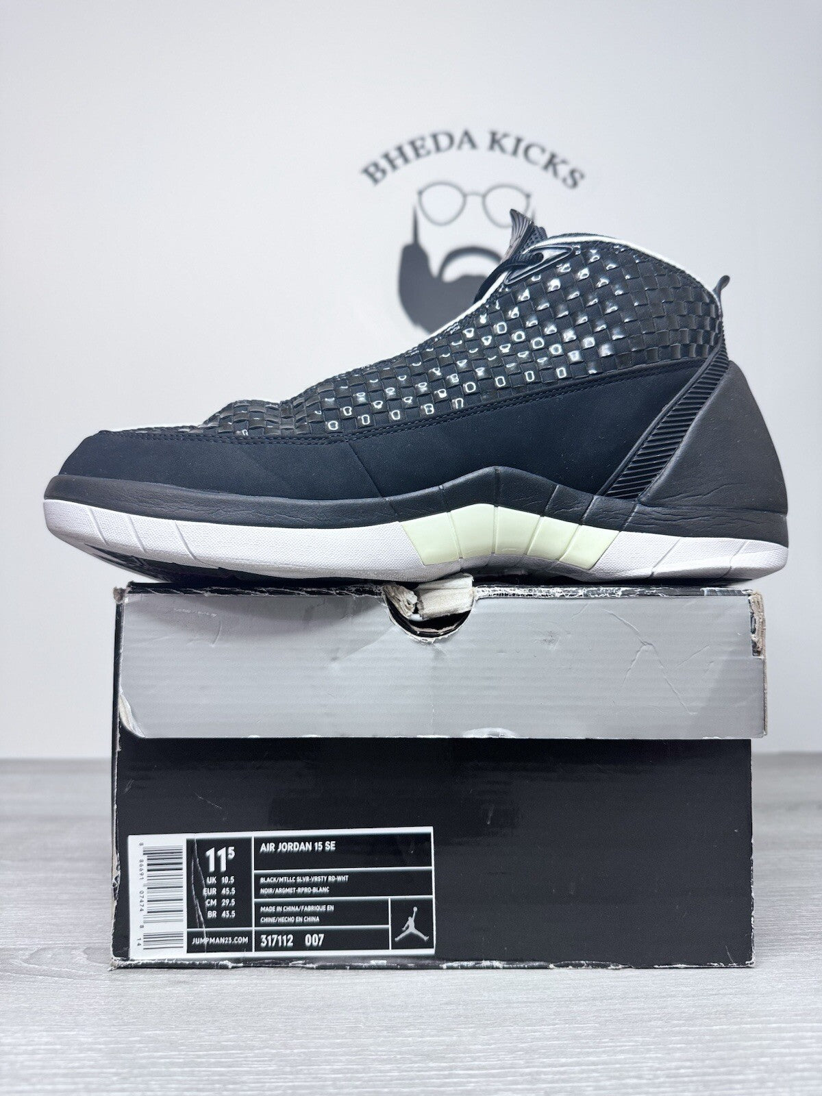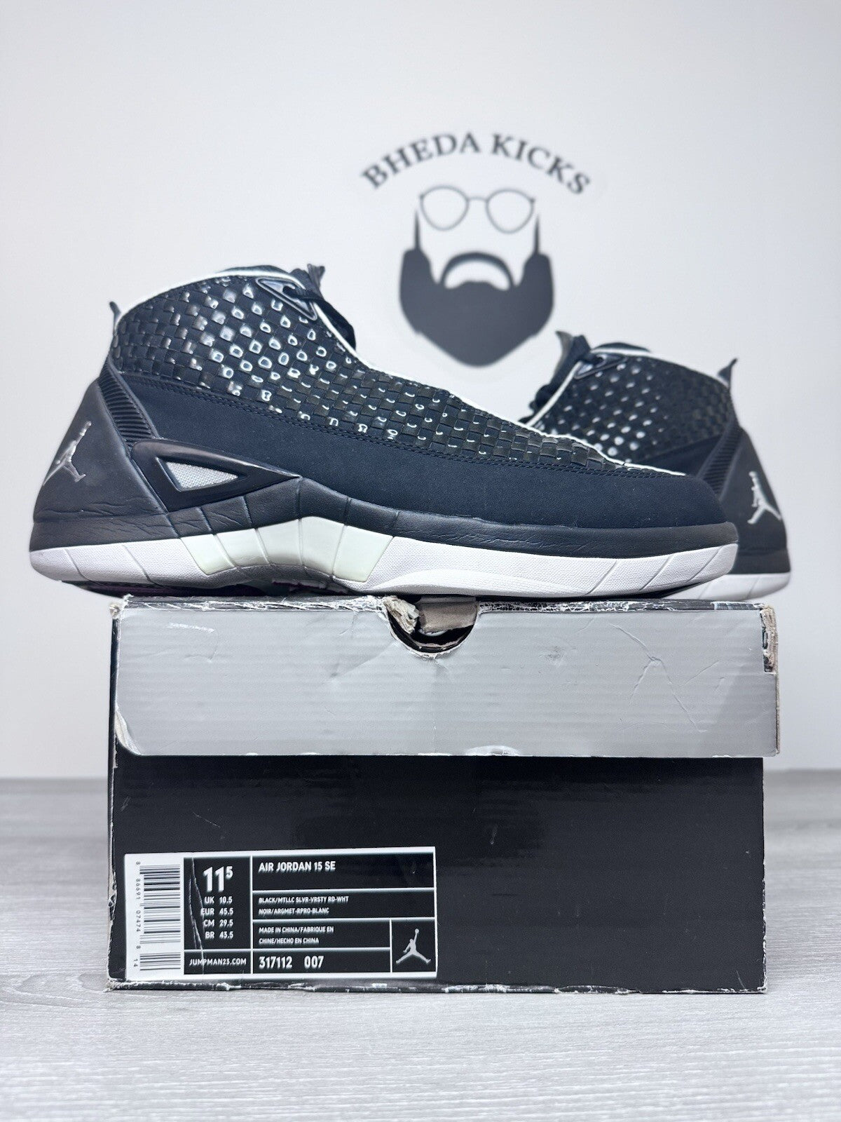 Size 11.5 Nike Air Jordan 15 XV Retro SE Black Metallic Silver 2008 317112-007