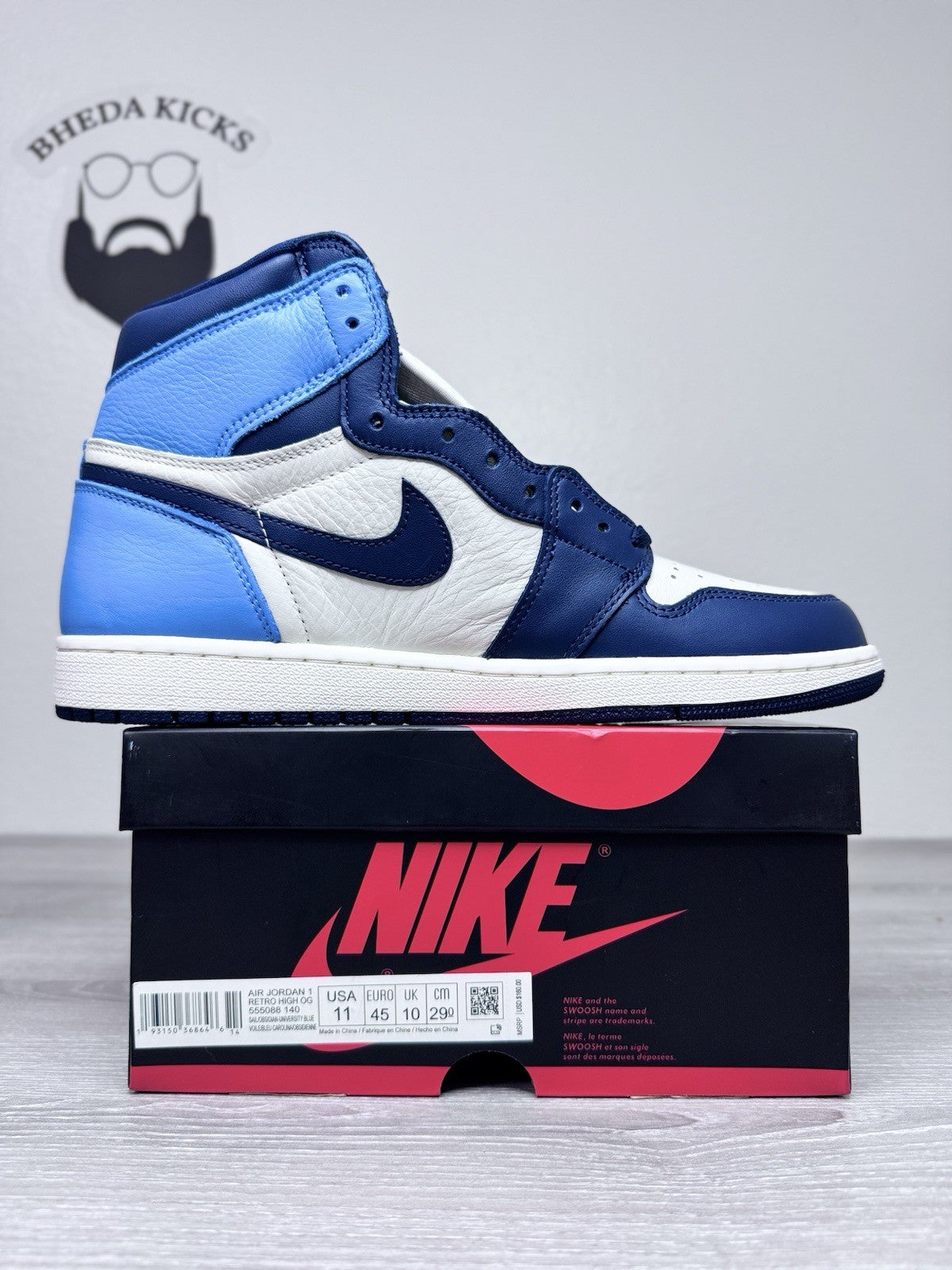 Size 11 - Jordan 1 Retro High Sail Obsidian UNC University Blue 555088-140 NEW