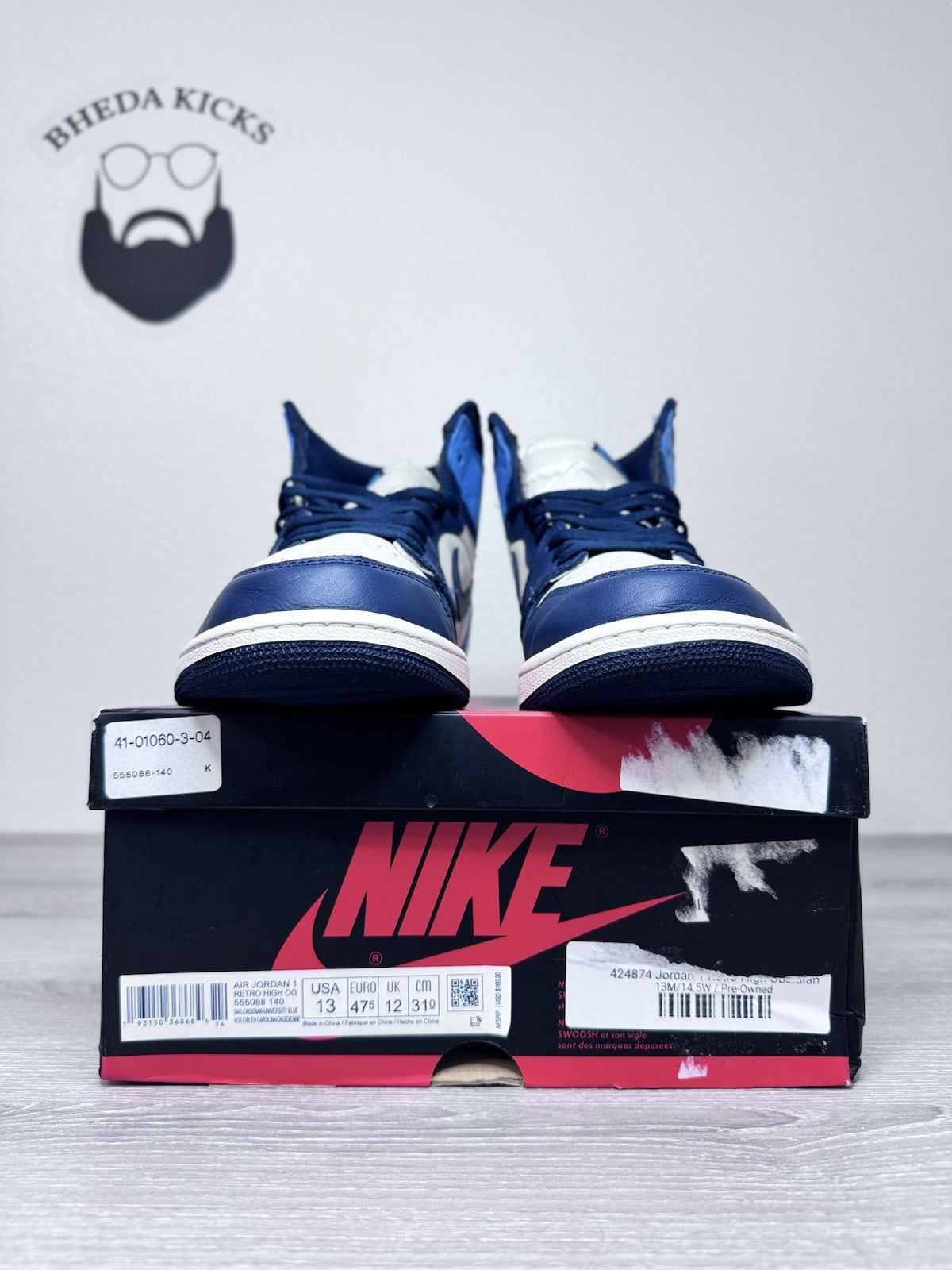 Size 13 - Nike Air Jordan 1 Retro OG High Obsidian UNC 2019 Authentic Preowned