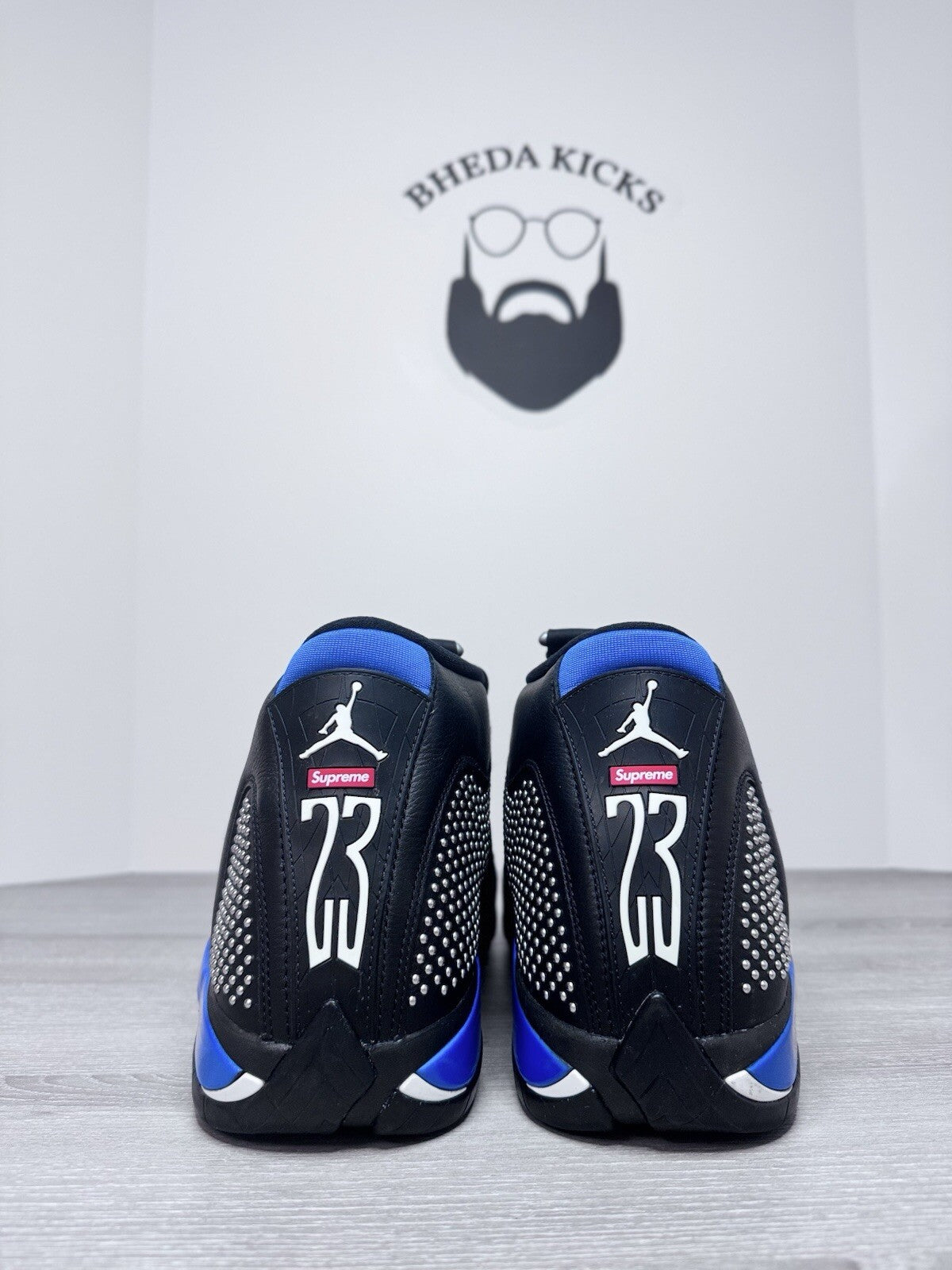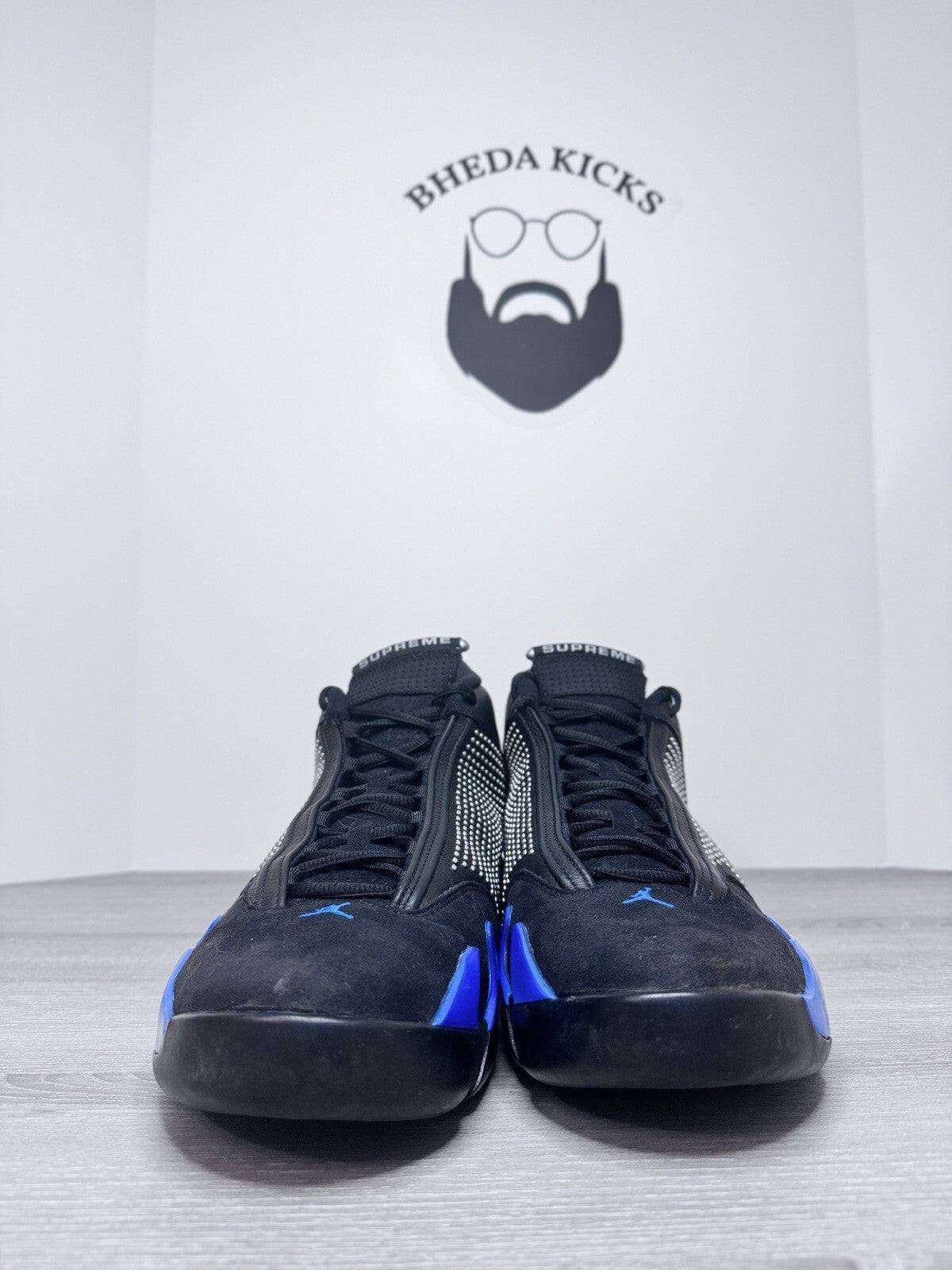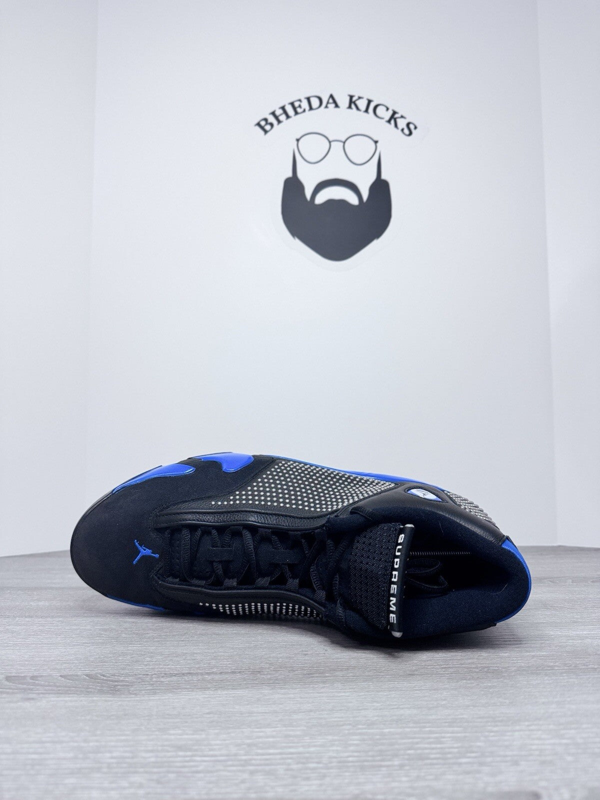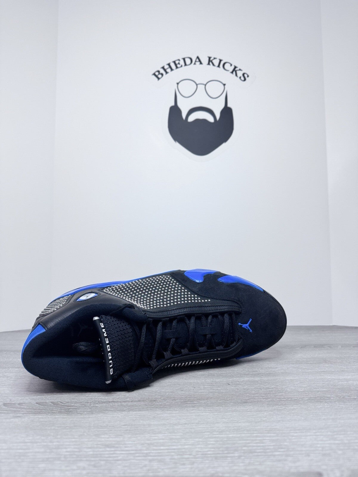 Size 15 - Nike Air Jordan 14 XIV Supreme Black Blue Chrome BV7630-004 Rare