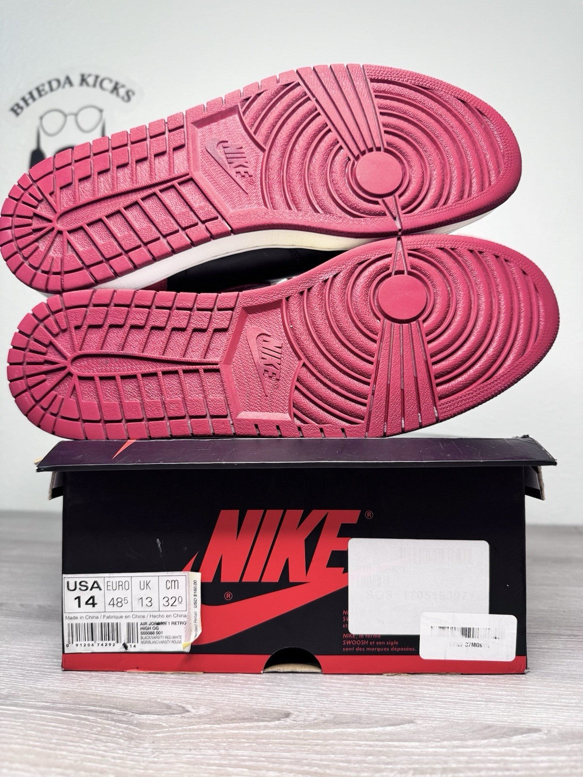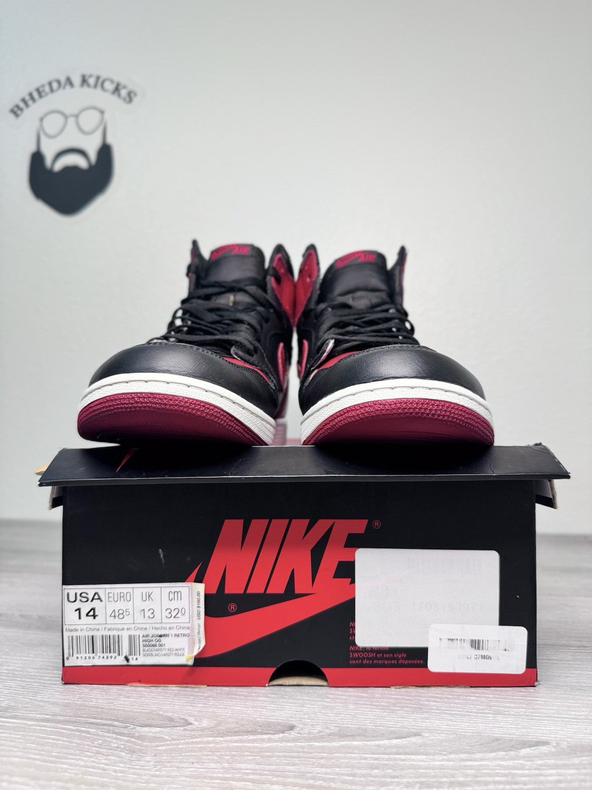 Size 14 - Nike Air Jordan 1 Retro OG High Banned Bred 555088-001 2016 Preowned